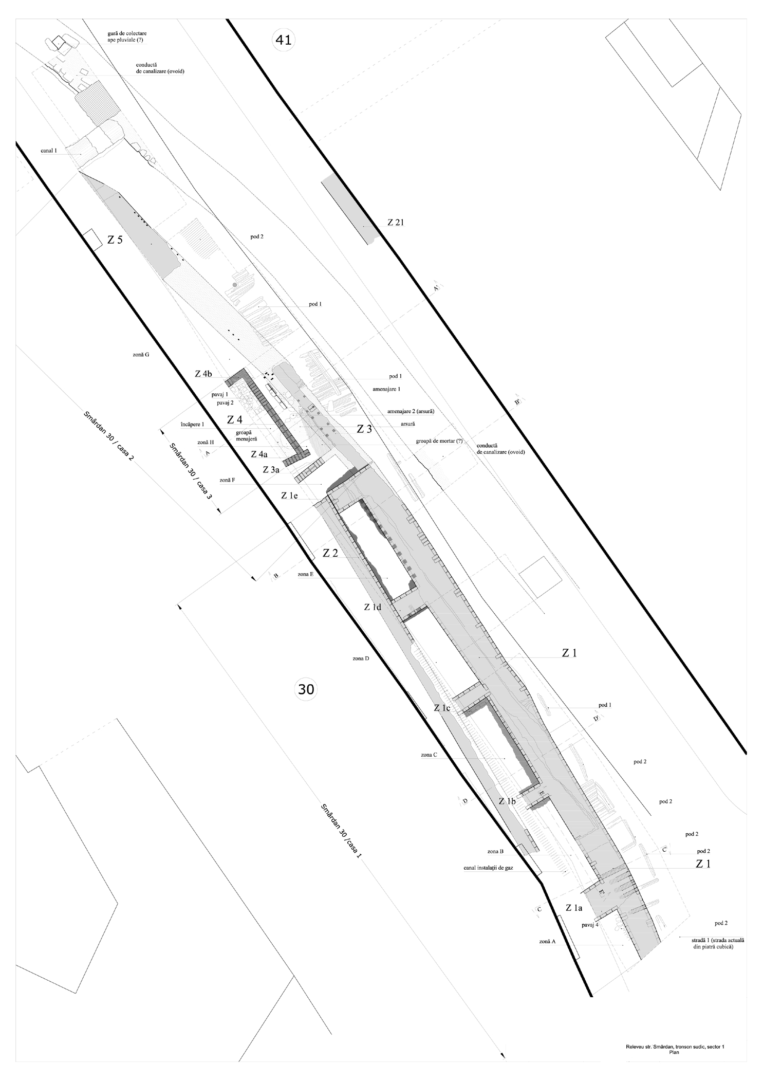 planşa 05_Planul vestigiilor arheologice / tronson str. Zarafi - b-dul I.C. Brătianu