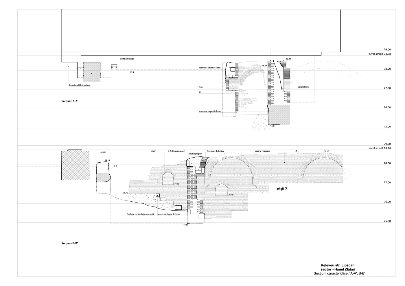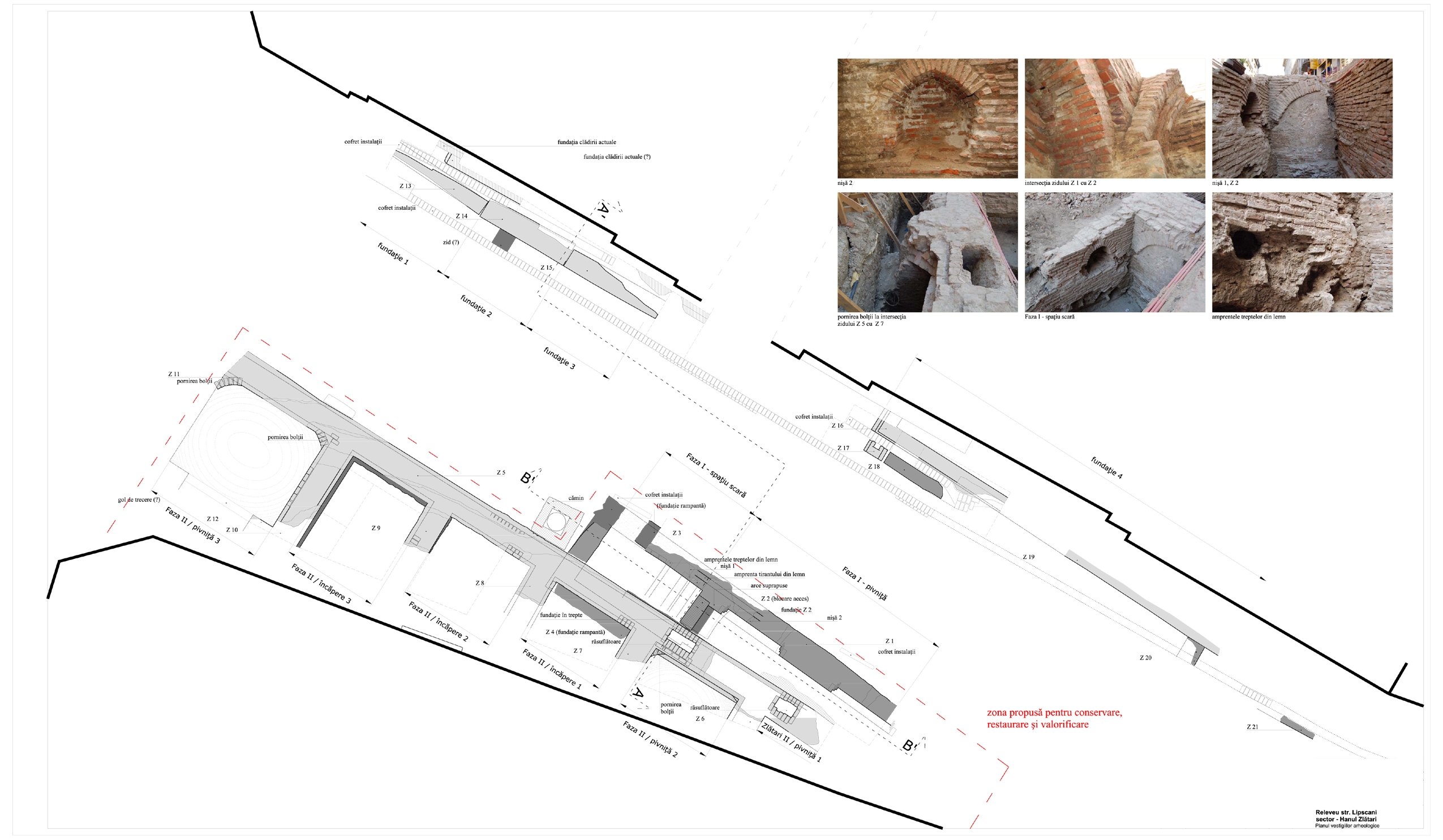planșa 02_ planul vestigiilor arheologice, secţiuni caracteristice - Hanul Stavropoleos