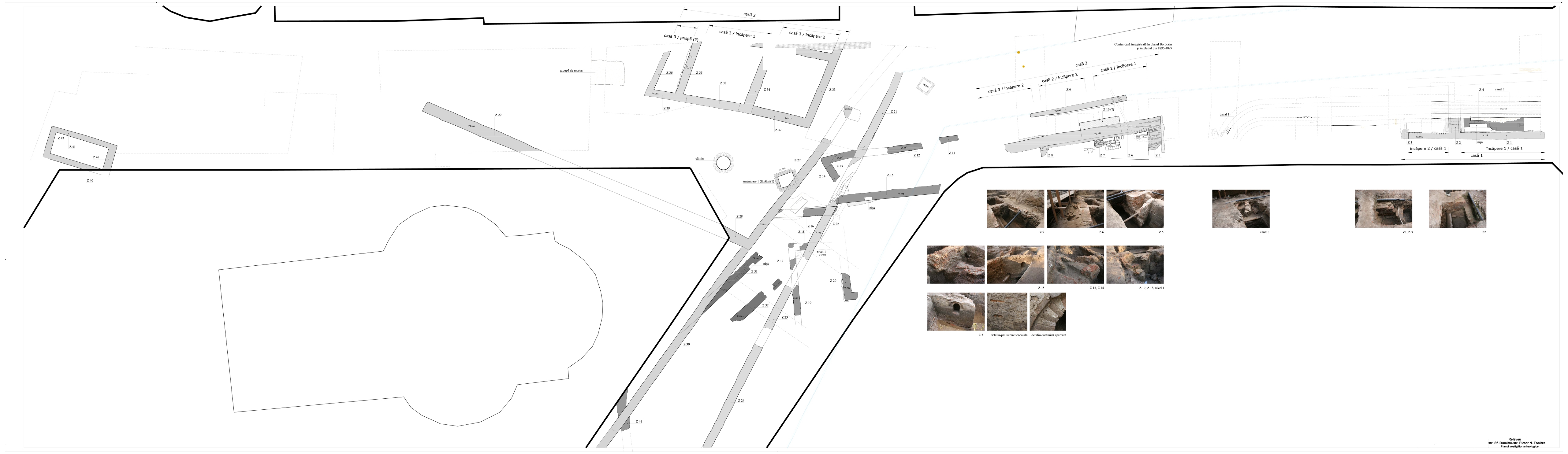 planşa 01_ Planul vestigiilor arheologice de pe str. Sf. Dumitru şi str. Pictor N. Tonitza (tronson nordic)