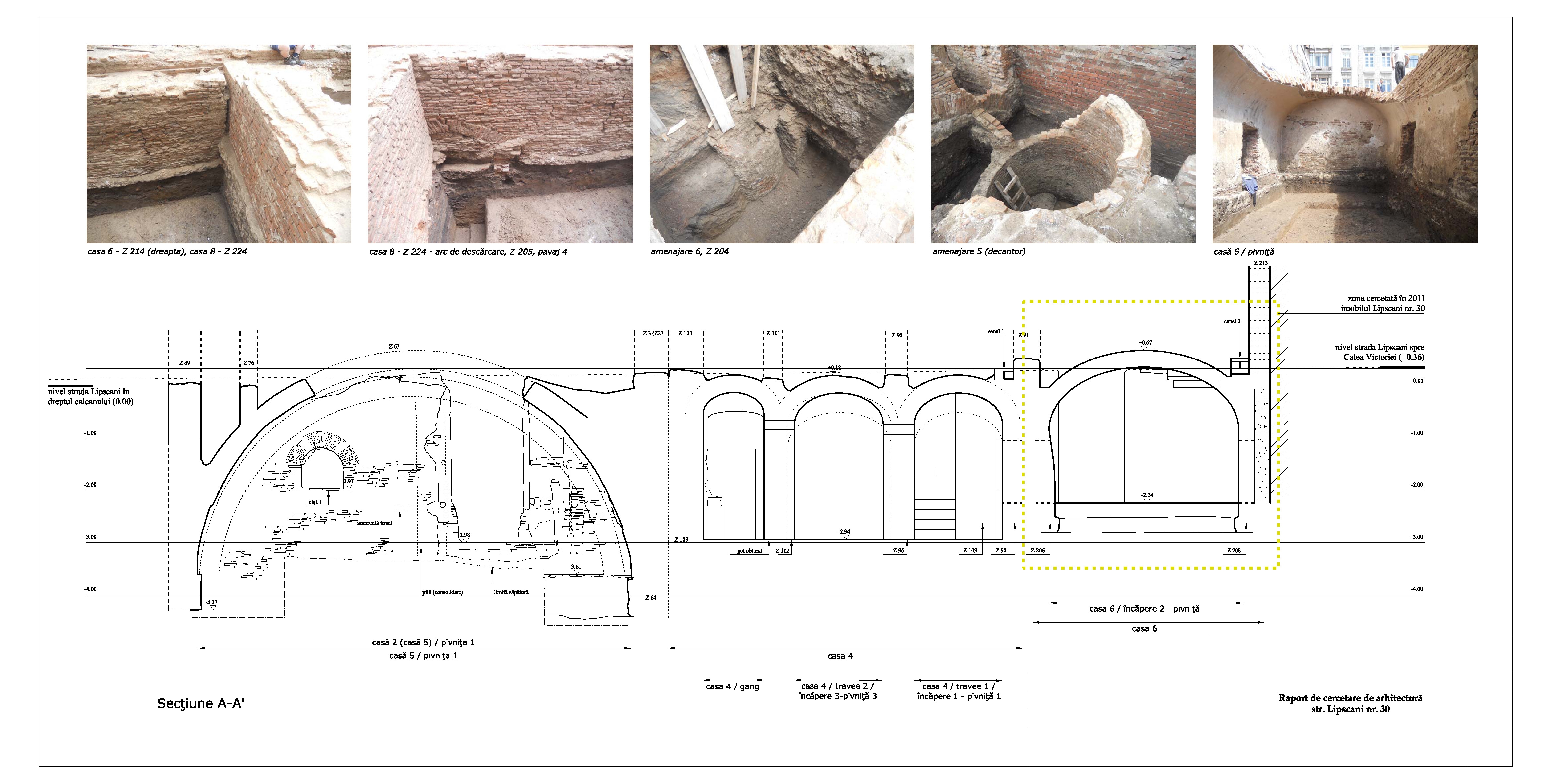 planşa 04_Planul vestigiilor arheologice / tronson Lipscani nr.22 - Lipscani nr.63