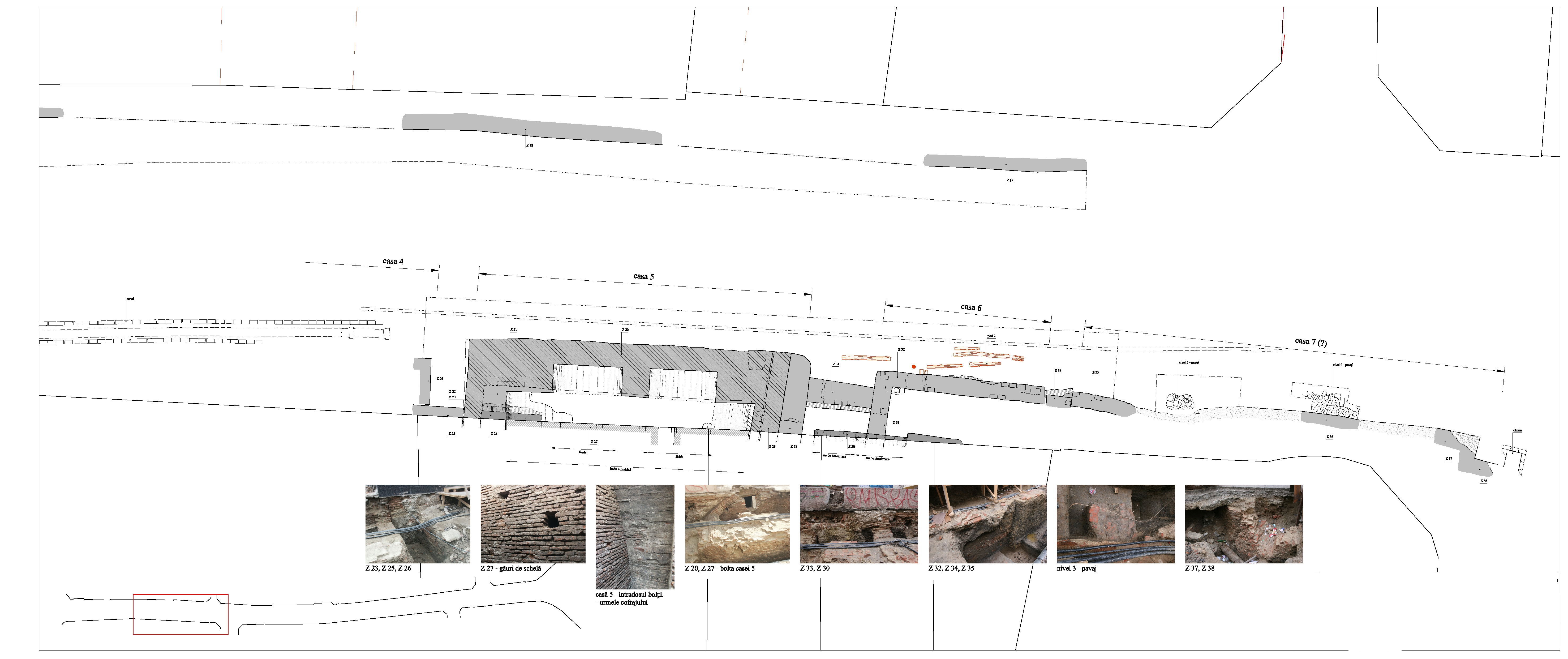 planşa 04_ Planul vestigiilor arheologice / tronson str. Şelari - Gabroveni nr. 19