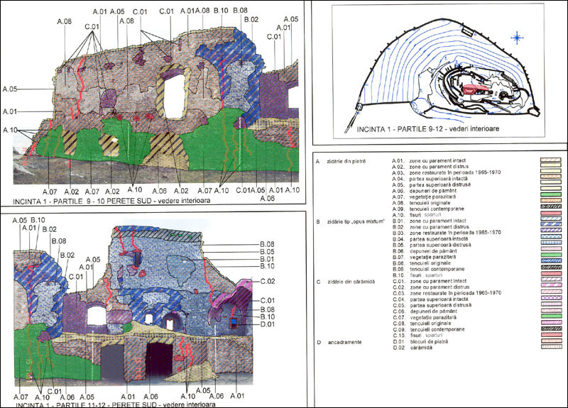 conservare şi consolidare. Studiul a fost efectuat pe curtinele celor trei incinte